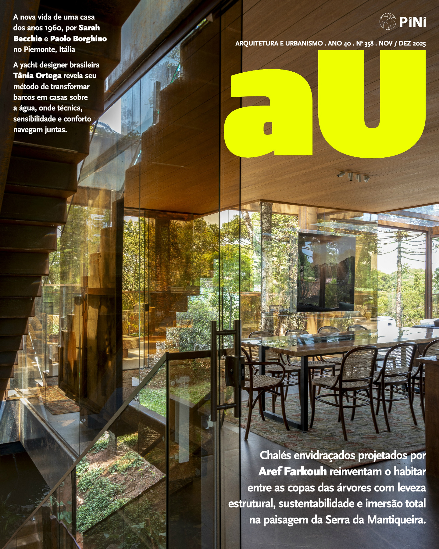 Chalés envidraçados projetados por Aref Farkouh reinventam o habitar entre as copas das árvores com leveza estrutural, sustentabilidade e imersão total na paisagem da Serra da Mantiqueira.